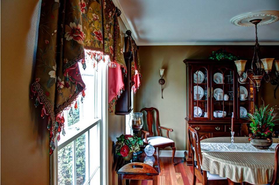 Однозначно, сложные шторы-ламбрекены изысканных форм смотрятся более впечатляюще и презентабельнее, однако для интерьера в стиле кантри лучшим вариантом будет прямой классический ламбрекен