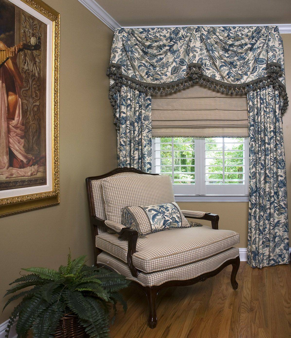 Данный вид сочетает в себе жесткую часть и мягкие драпировки. Он выигрышно смотрится на больших окнах и высоких потолках в просторной гостиной.