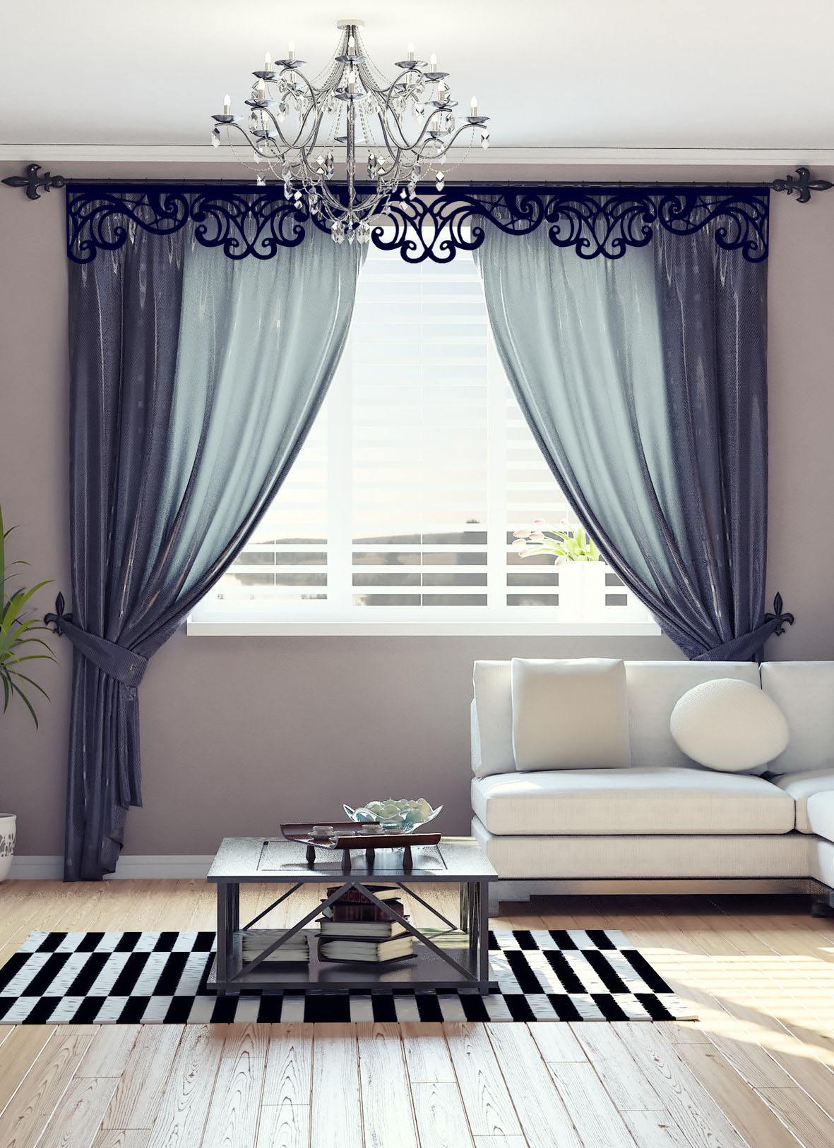 При выборе шторного дизайна важно отталкиваться от стилистики интерьера и практичности фасона. Если красивый декор мешает зашторивать портьеру напротив балконной двери или широкой фрамуги, придется искать способ решения проблемы: