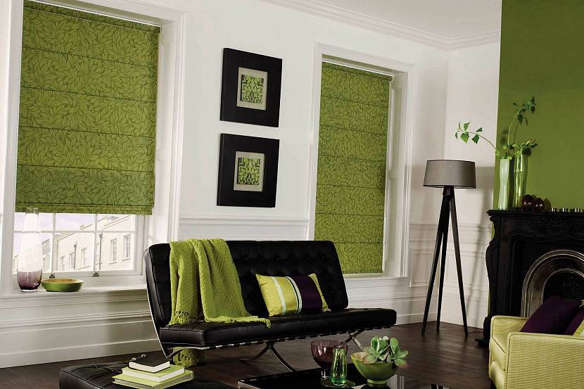 Римские жалюзи – еще один прекрасный вариант для зала с любым дизайнерским решением. Такие жалюзи прекрасно защитят комнату от солнечных лучей в ранние утренние часы