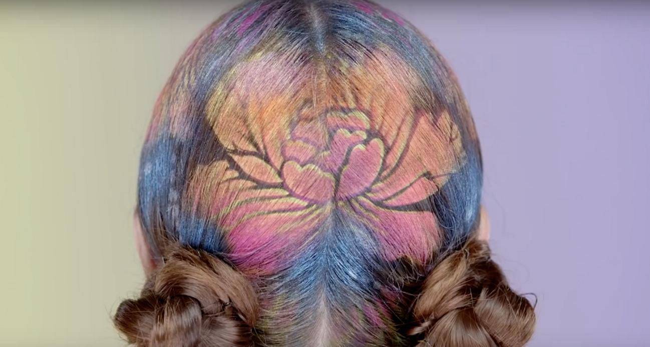 Трафаретое окрашивание – краска наносится на основной тон через трафарет, создавая необычные рисунки (цветы, животные, лица). Самый модный рисунок – увеличенное изображение пикселей. Волосы в мелкий квадратик выглядят ярко и необычно.