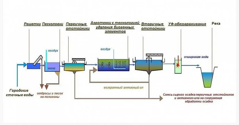 После завершения процедуры очистки сточные воды поступают в городскую системуИсточник eurobion.info