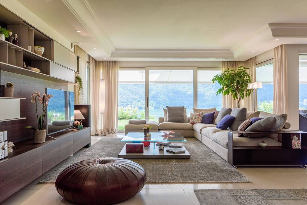 Сегодня актуально обилие света в комнате, преимущественно естественного. Для этого можно установить панорамные окна. Такой прием позволит добавить простора в гостиную, даже если она сравнительно небольшая.