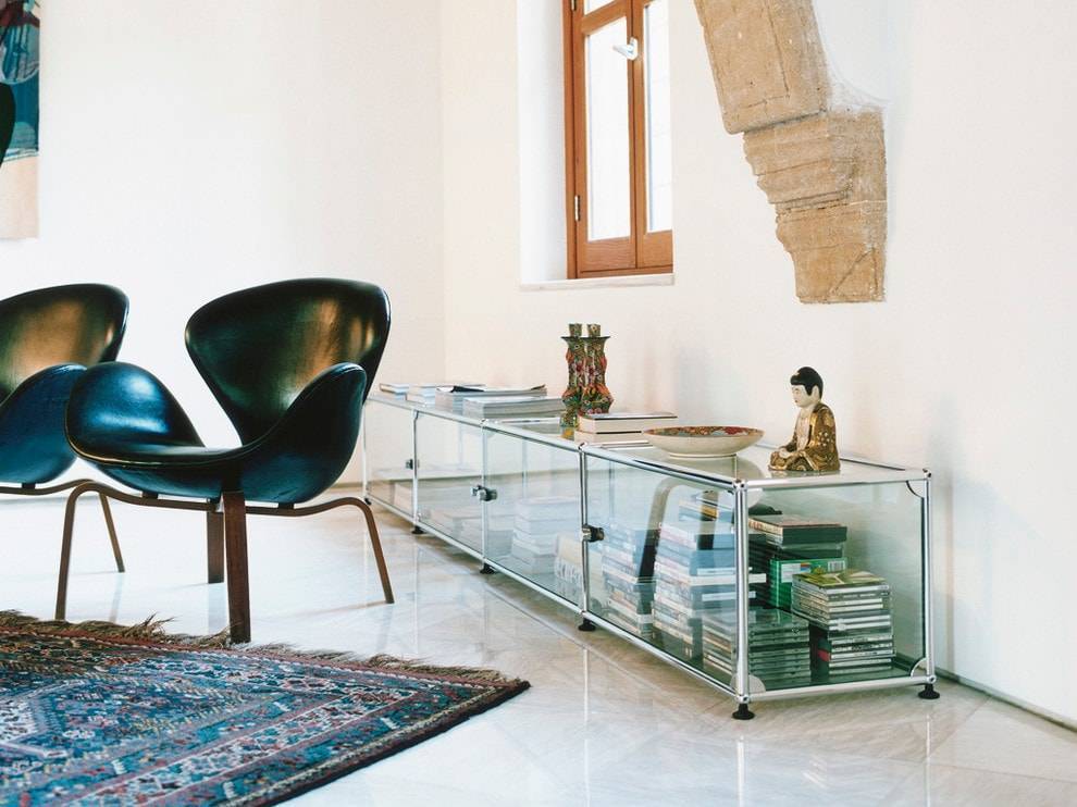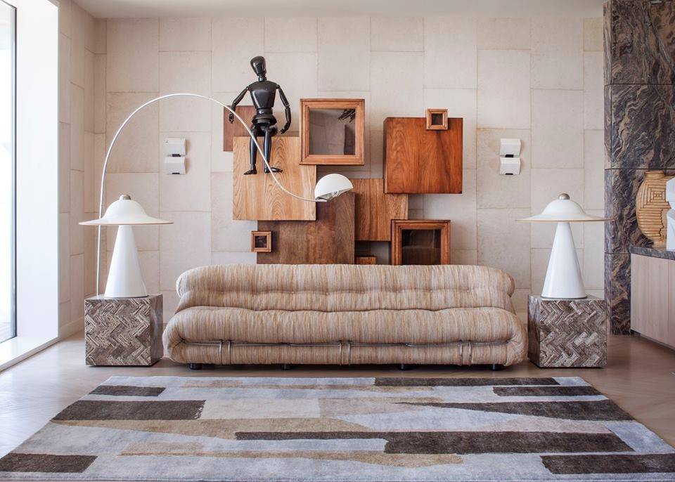 К ним относятся журнальные столики с мраморной столешницей и металлическим основанием, дымчатое или матовое стекло, стулья из гнутого дерева, фанеры или ротанга. Все более популярные многофункциональные настенные блоки, вдохновленные стилем 70-х годов, также возвращаются в гостиные: они сделаны из дерева, фанеры или сочетают металл с драгоценными породами дерева, например, грецким орехом.