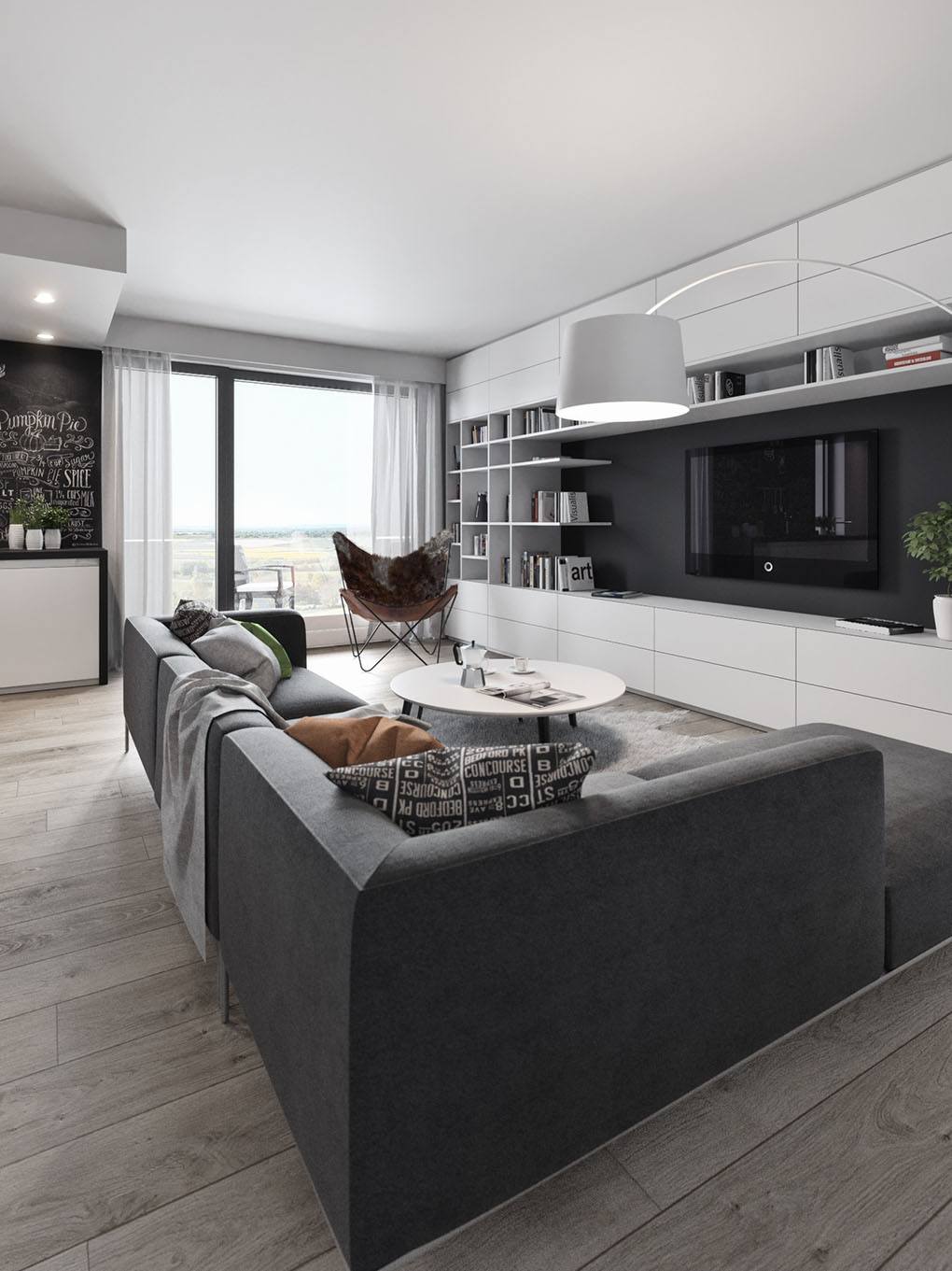 В равной степени интересна и другая, менее важная, но современная мебель для гостиной, например, книжные полки, телевизионные тумбы или книжные шкафы. Поскольку декор ограничен необходимым, хорошо подчеркните минимализм расположения предметов интерьера, их практические функции, включая надежность и емкость, которые выходят на первый план.