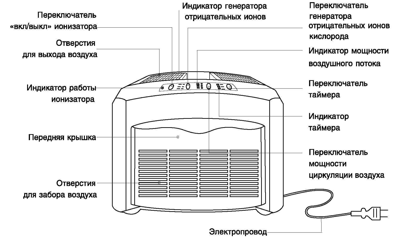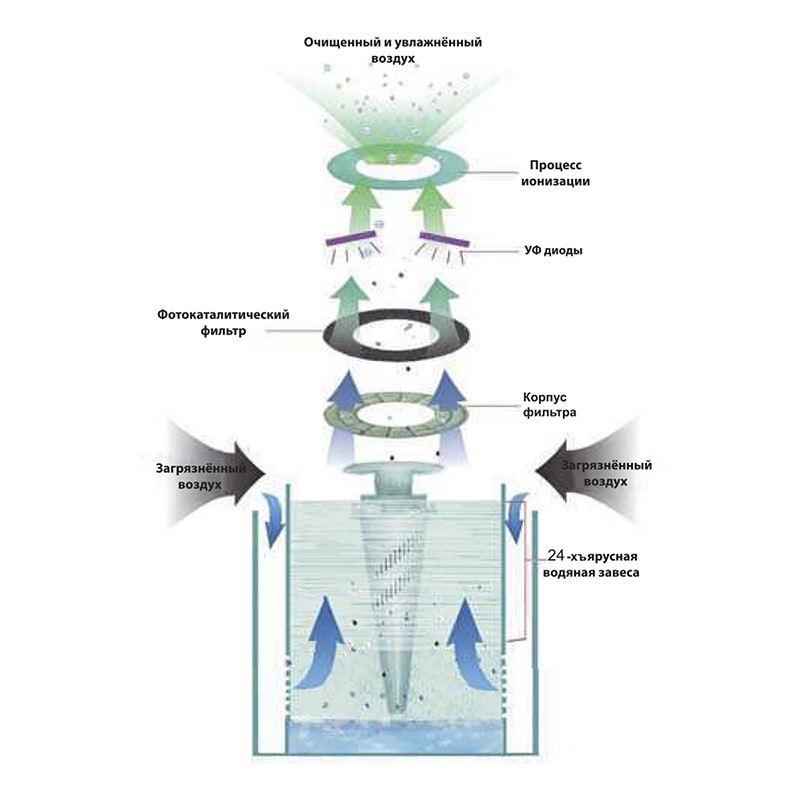 Базовая конструкция очистителя, совмещенного с увлажнителем, включает: