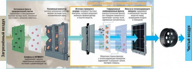 - многоступенчатая система очистки воздуха, устраняющая из него все лишнее;
