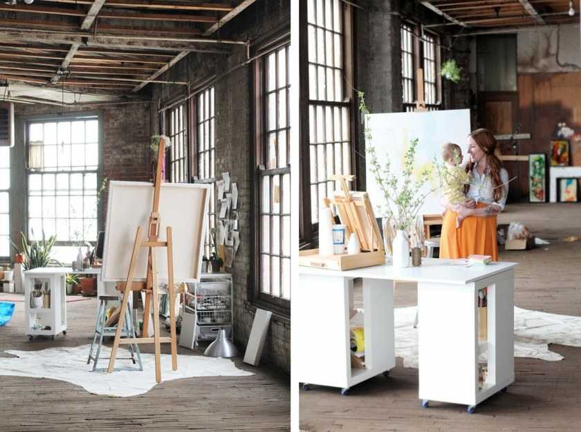- Студийные мольберты. Вариант для крупных профессиональных работ. Под рукой в данном случае много возможностей: регулировка высоты, выбор угла наклона, специальный отсек для кистей и красок. Отличается большими габаритами, устойчивостью при работе даже с большими полотнами, надежным закреплением холстов и отсутствием горизонтальной установки.