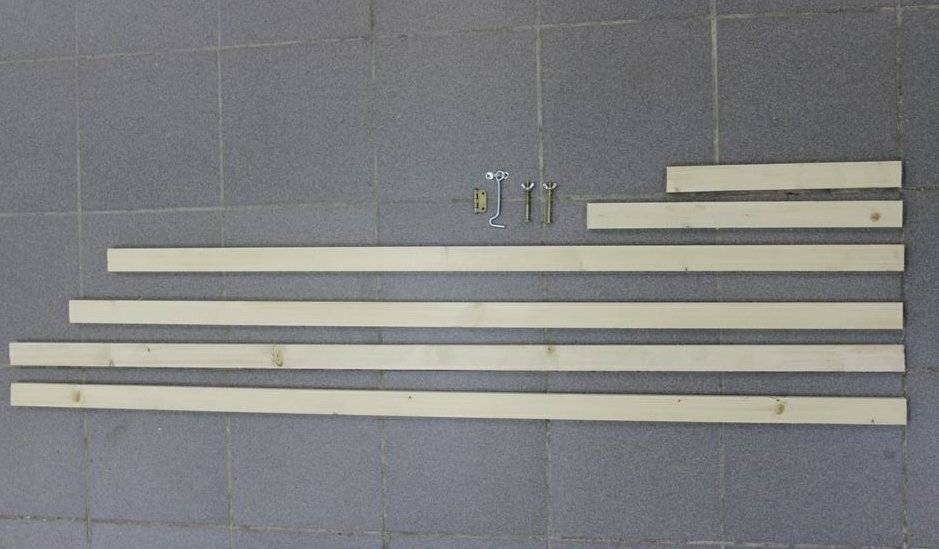 - 3 штуки сосновой рейки, длиной по 3 метра и с параметрами 4,5 × 2 см;