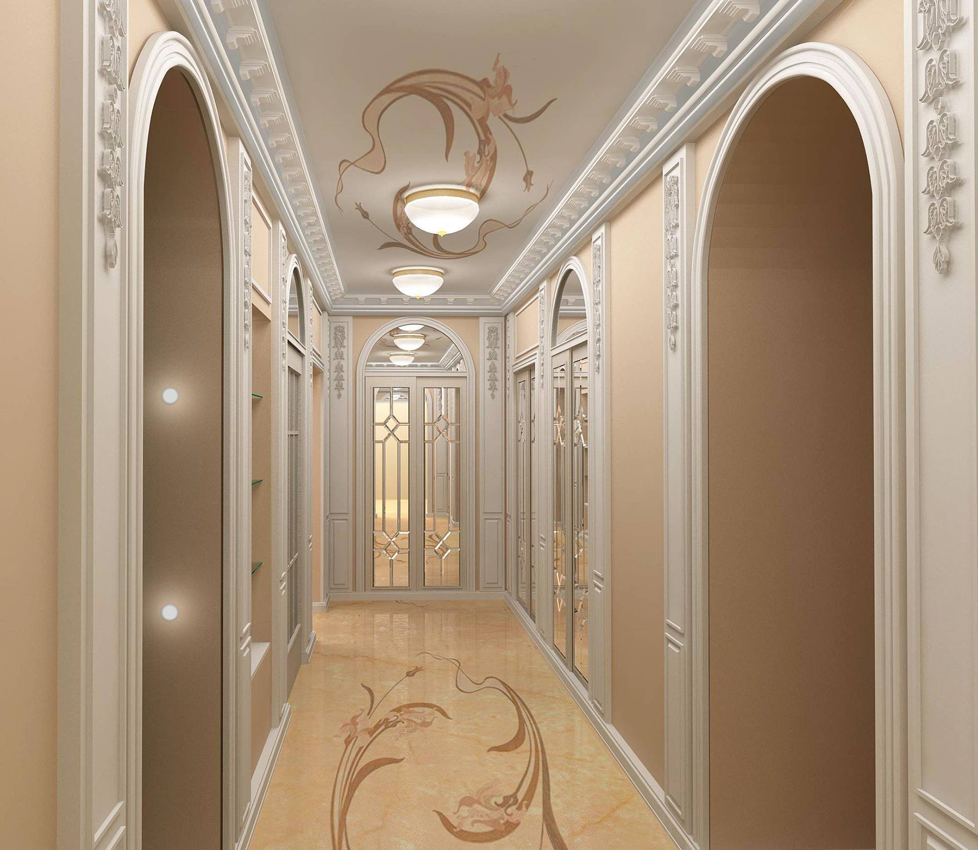 Изысканно выглядят настенные молдинги из полиуретана даже в интерьере коридора