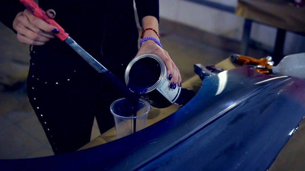Разбавлять раствор нужно в теплом и чистом помещении, но необязательно в специальной покрасочной камере. Сажа образует рельефность и придает эмали темный оттенок. Молотковый эффект краски получается благодаря алюминиевой стружке. Далее процесс затягивается: