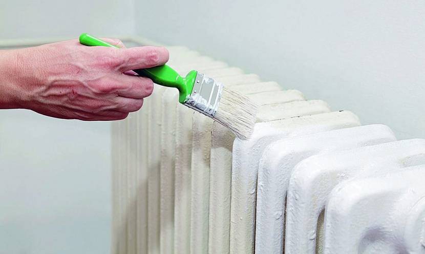 Наносят в два–три слоя. Эмаль для первого слоя нужно разбавить (1 часть растворителя на 9–10 частей краски). Остальные слои можно наносить неразбавленной краской. Сначала кистью окрашивают уголки, кромки и другие места со сложным рельефом, а затем с помощью валика покрывают ровные участки.