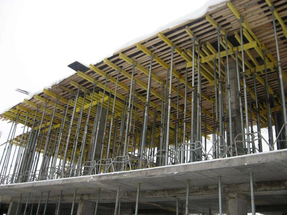 Итак, для отливки горизонтальных конструкций зданий применяется специальное оборудование — опалубка для перекрытий, которая представляем собой щит с бортиками, установленный на высокие стойки. Поддерживают щит специальные балки. Использование оборудования позволяет отливать перекрытия различной площади и толщины. Возможно также осуществление нестандартных проектов, например, с многоуровневыми перекрытиями.