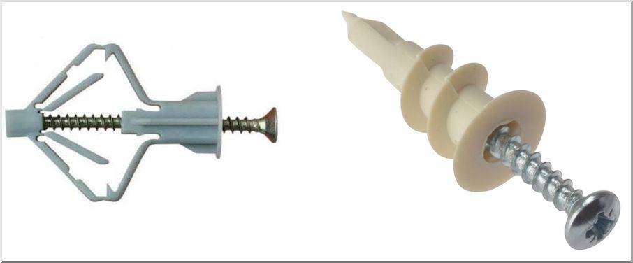 Существует 2 вида дюбелей для фиксации плинтуса на ГКЛ