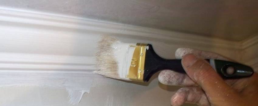 Когда клей или герметик высохнут, можно приступать к покраске галтелей. После высыхания первого слоя краски обязательно наноситься второй слой для лучшего качества. Красить рекомендуется пульверизатором, но если такового не имеется, воспользуйтесь обычной кисточкой.
