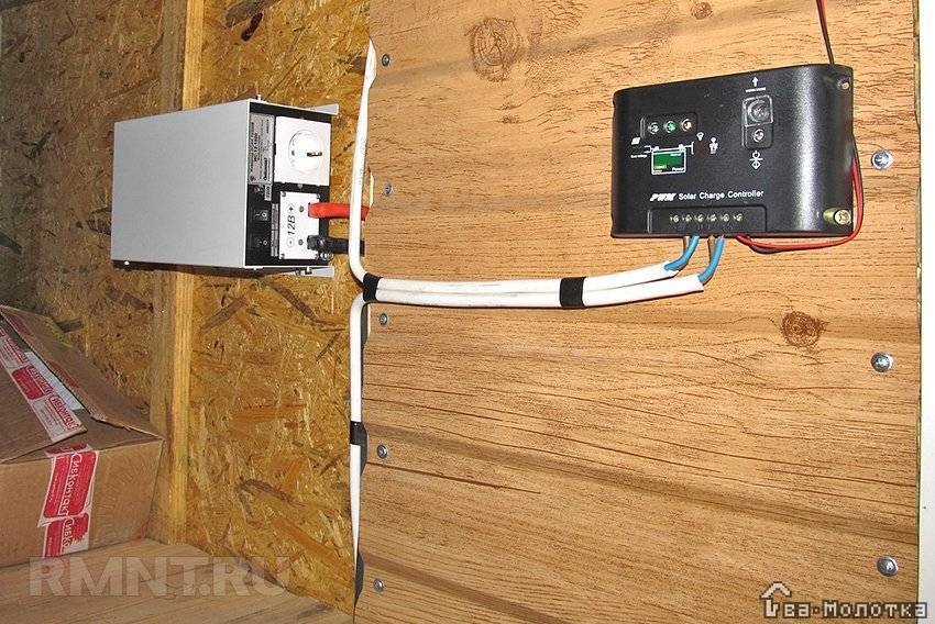 Контроллер заряда АКБ и инвертор необходимо разместить в сухом помещении с комнатной температурой, например, в кладовке или прихожей. Размещать это оборудование вне помещения нецелесообразно, так как электронные узлы аппаратуры не должны подвергаться значительным колебаниям температуры и влажности. Саму аккумуляторную батарею можно разместить вместе с электроникой.