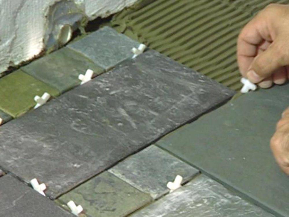 важно оставить промежуток между основанием и выступом во избежания расколов материала. В швы между плитками необходимо вставить пластиковые крестики