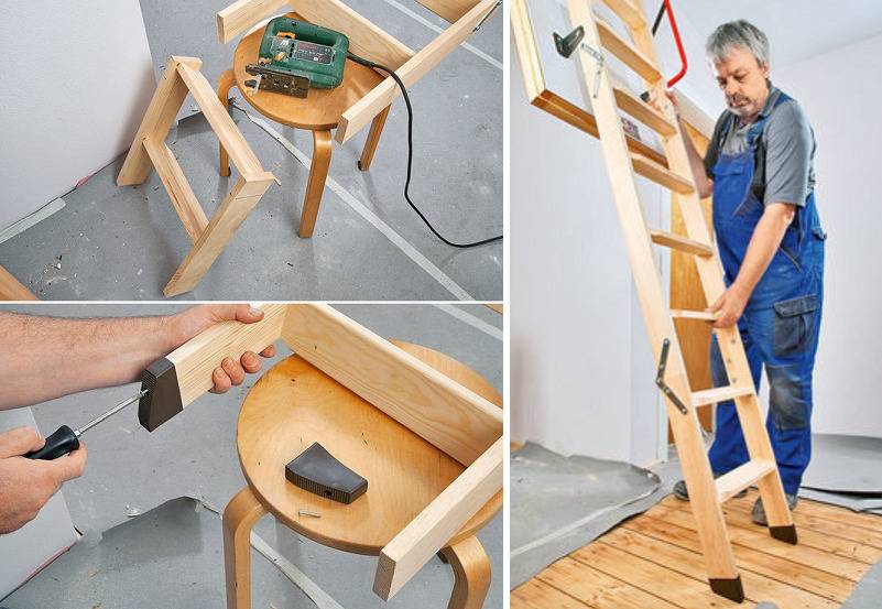 Те, кто умеет работать с древесиной или металлом, а также пользоваться инструментами, могут попытаться изготовить и установить откидную конструкцию самостоятельно. Это отличный способ повысить квалификацию и не покупать дорогостоящую конструкцию. Если же лестница уже куплена, то самостоятельная установка также позволит неплохо сэкономить хорошему хозяину.