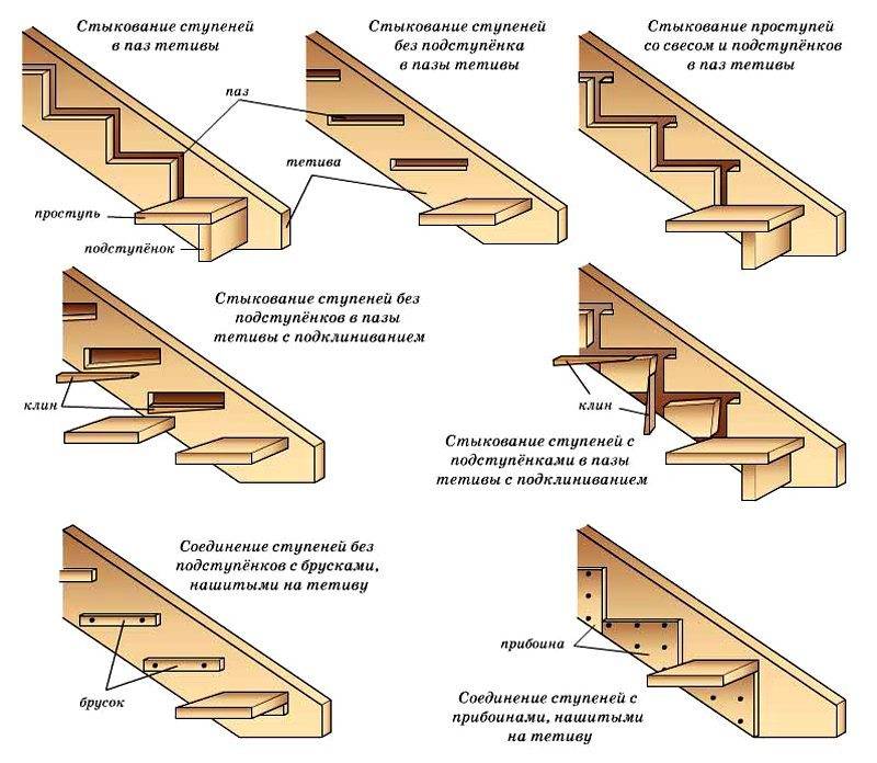 Существует четыре вида креплений ступеней деревянной лестницы: