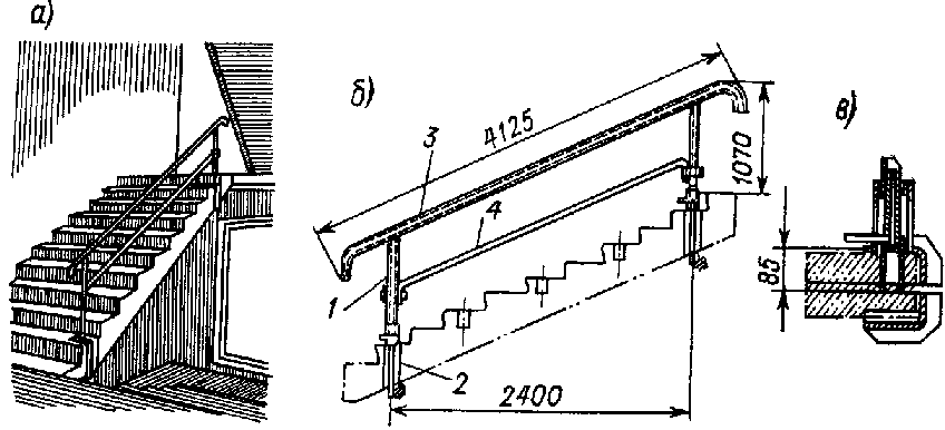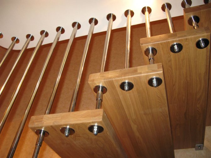 Законченный вид лестнице придаётся вспомогательными элементами. Ограждения могут использоваться как резные, так и ровные, стальные либо деревянные фигурные.
