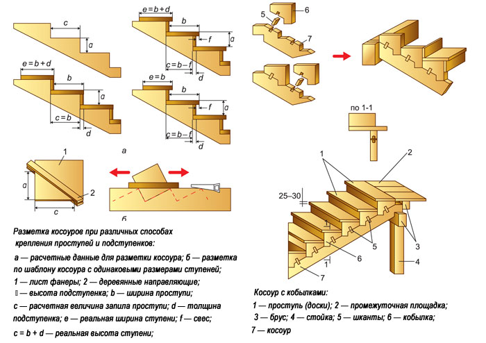 Предположим, что вы хотите крепить элементы к косоурам. Тогда проступь и подступенек соединяются одним из способов: