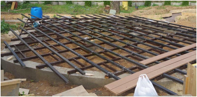 Крепление террасной доски к металлу осуществляется только в том случае, если поверхность тщательно подготовлена для дальнейших работ. Основание должно быть ровным (без ям, углублений, выпуклостей), достаточно жестким и упругим, чтобы выдержать вес настила и всех расположенных на нем элементов. Неправильно подготовленная поверхность практически всегда становится причиной: