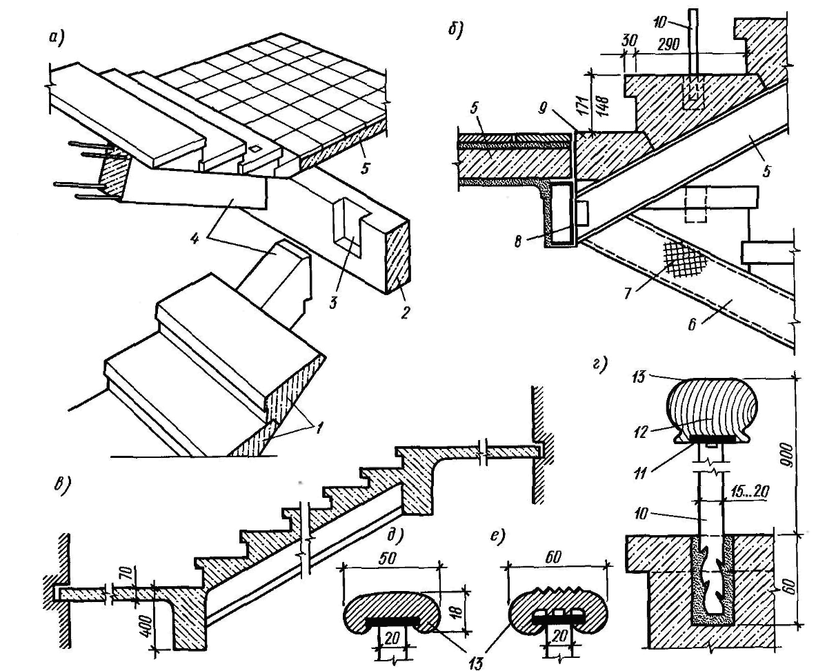 Конструкция лестничного марша представляет собой комбинацию из различных составляющих с разным функциональным назначением: