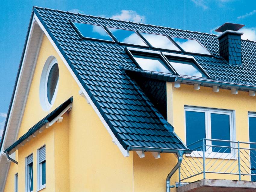 Сквозные выходы в кровле выполняют с использованием специальных проходных элементов для металлочерепицы. Они призваны обеспечивать герметичность конструкции. Такие элементы устанавливаются согласно инструкции производителя так же, как и мансардное окно на металлочерепицу.