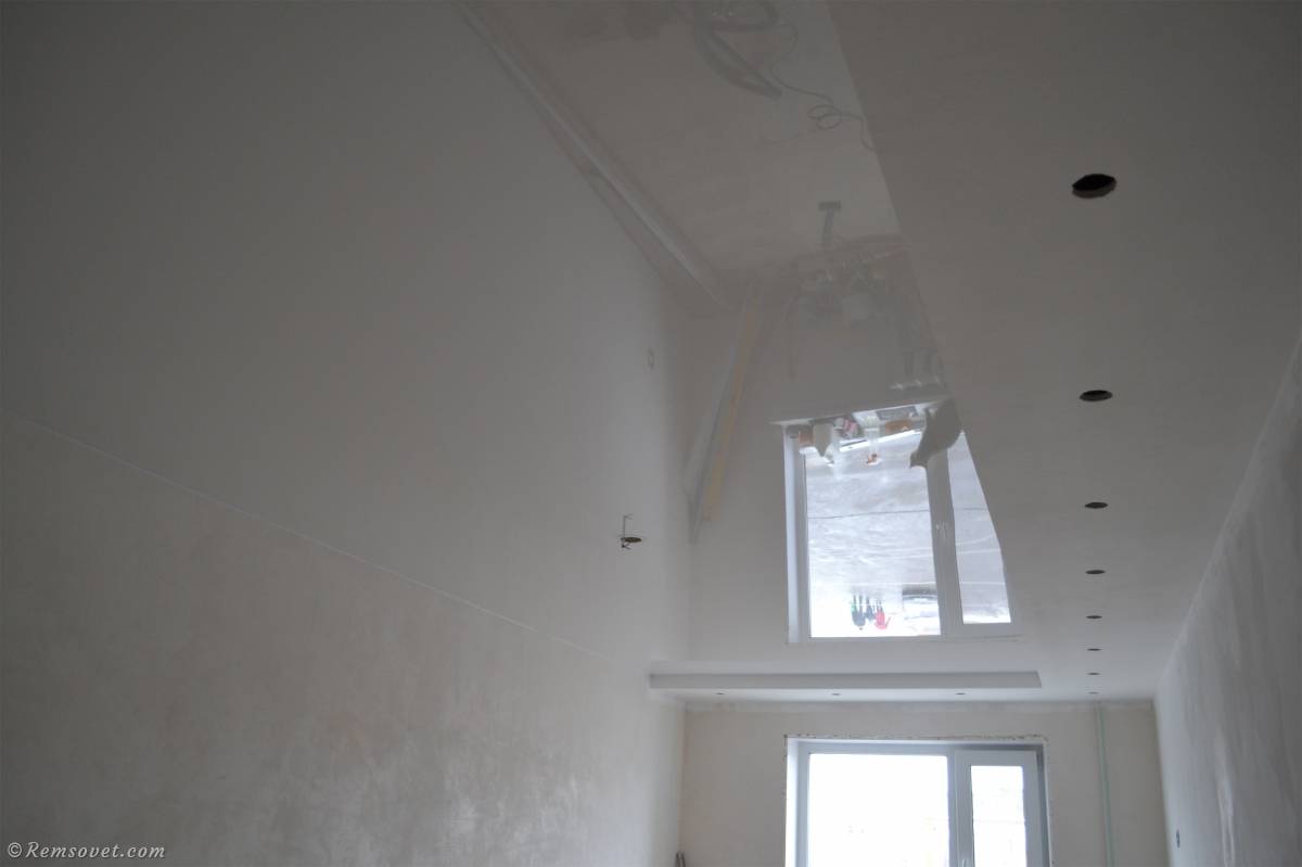 высота между натяжным потолком и основанием всего 1,5 см, что очень важно для низких помещений;
