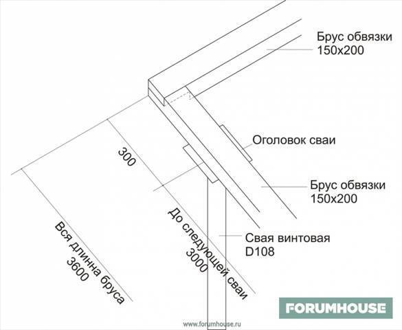 Ширина брусадля ростверка должна оказаться больше в 1,5 раза по сравнению с диаметром свай. Третье условие, которое необходимо соблюсти, заключается в том, что центральная ось опор должна проходить через центр бруса.Обвязка винтовых свай может предполагать соединение опор и балок с помощью одной из трех технологий, среди них монтаж:на сварку;резьбовое соединение;хомуты.Выбрать технологию можно в зависимости от конструктивных особенностей материала балки и прочности фундамента. Обвязка винтовых свай брусом делается довольно часто.Однако многие домашние мастера задаются вопросом о том, стоит ли прибегать к данной технологии, если существуют более прочные и долговечные материалы по типу бетона и стали.
