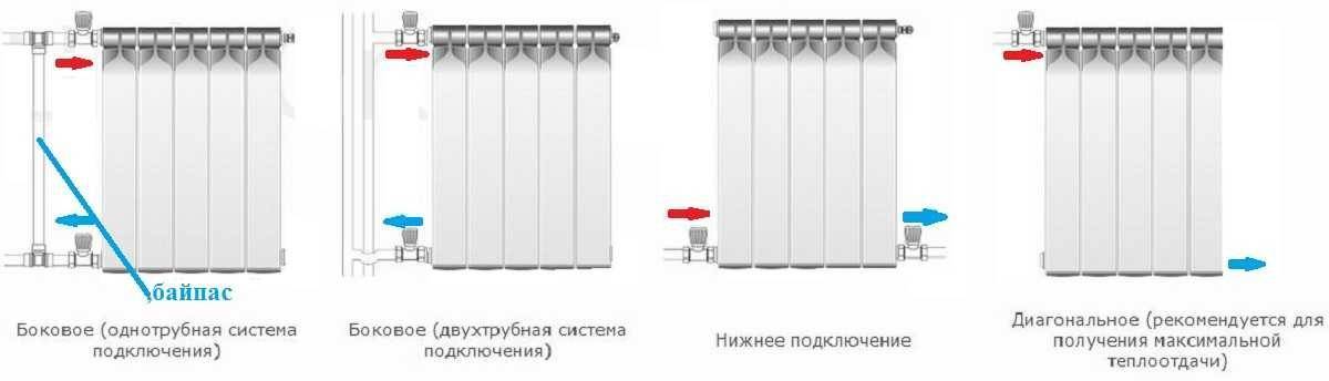 Многолетняя практика отечественных работников строительной индустрии позволила выделить несколько разновидностей схем обвязки приборов теплопередачи. Они продиктованы вариантами их подключения: