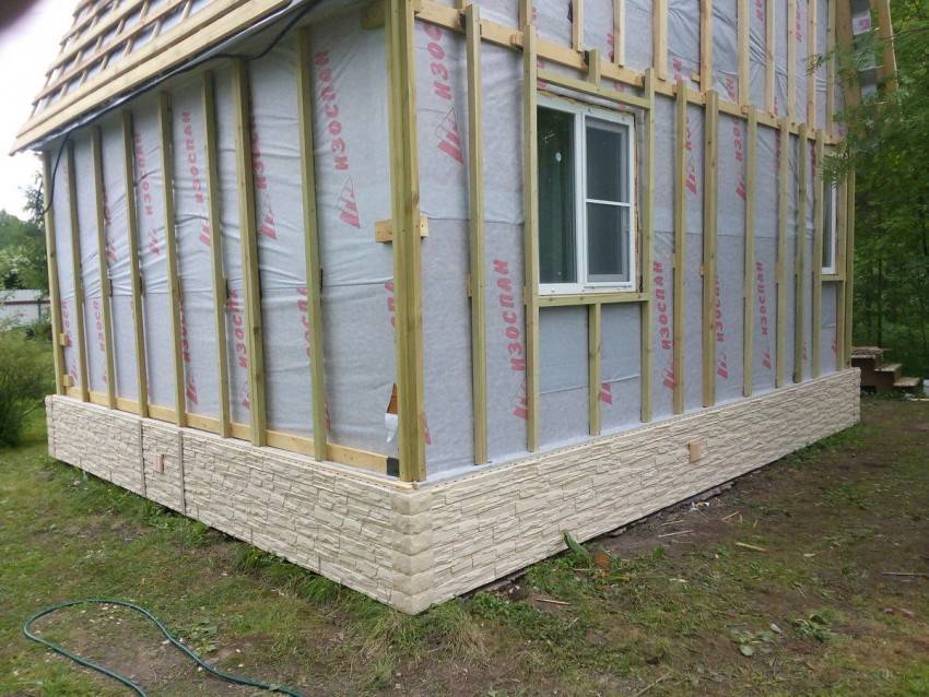 Утеплитель укладывается между направляющих каркаса, который набивается под рассматриваемый отделочный материал для фасада частного дома. Далее поверх него настилается еще один слой гидроизоляции. Причем все делается так, чтобы между мембраной и теплоизолятором на стенах дома оставалась воздушная подушка.