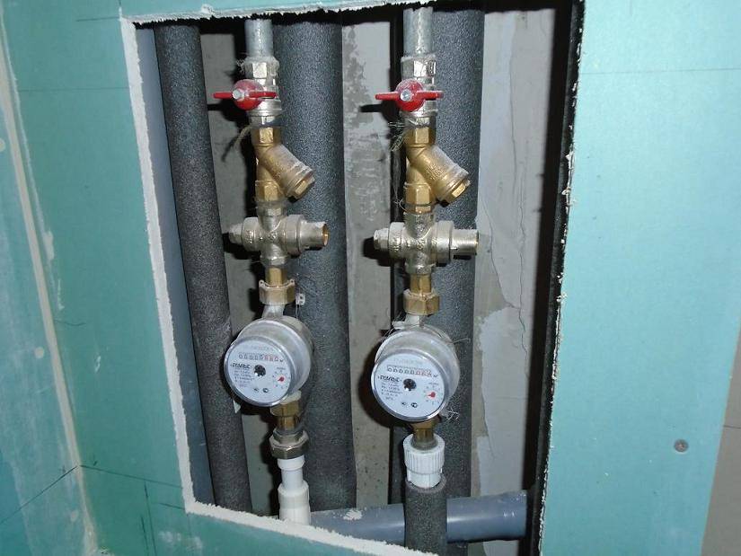 Счетчик устанавливают ближе к стене, из которой выступает входная труба. Это избавит от подозрений со стороны контролеров в намерении врезаться перед прибором учета.