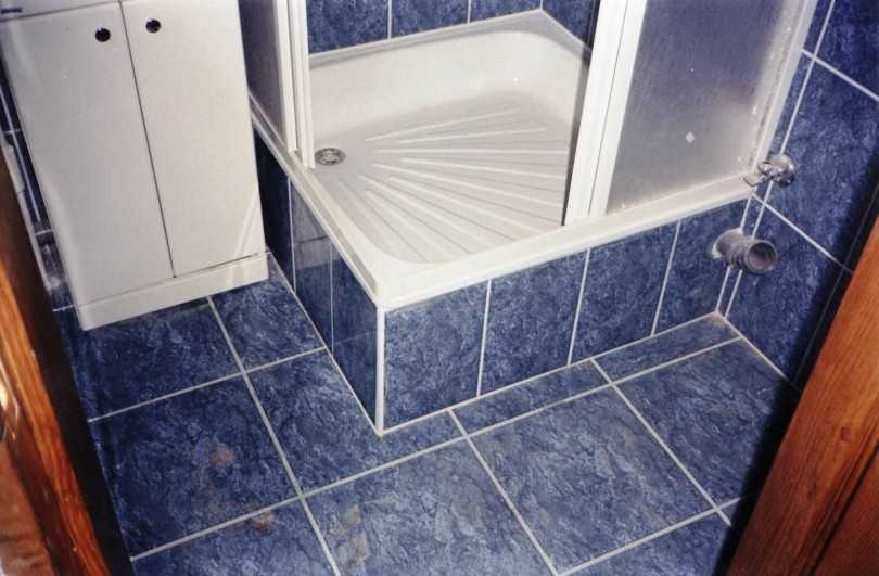 Замена старого пола необходима, потому как без этих действий не получится добраться до основания труб и обустроить новую систему стока воды. Если в полу сделать слив неправильно, то вместо своевременного оттока воды, она будет накапливаться и (если бортов не было предусмотрено) влага окажется в душе.