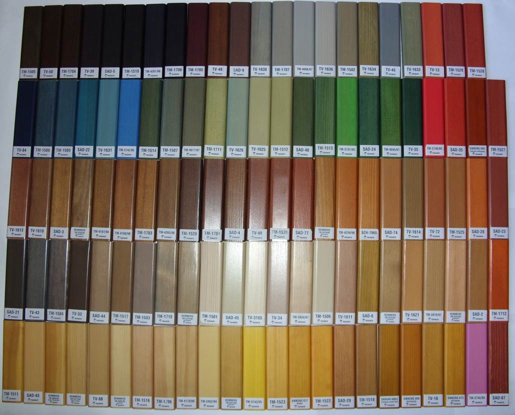 Все производители сопровождают продукцию образцами морилок. При покупке можно легко подобрать нужный тон