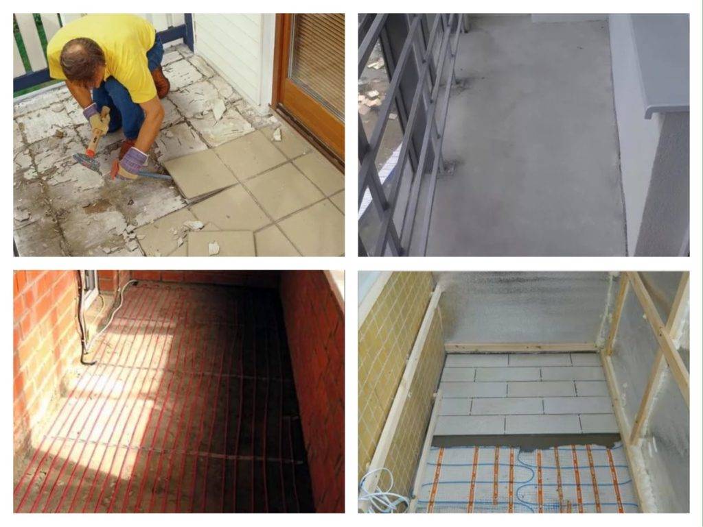 - Если не планируете класть плитку на старую поверхность, то следует провести демонтаж балконного пола.