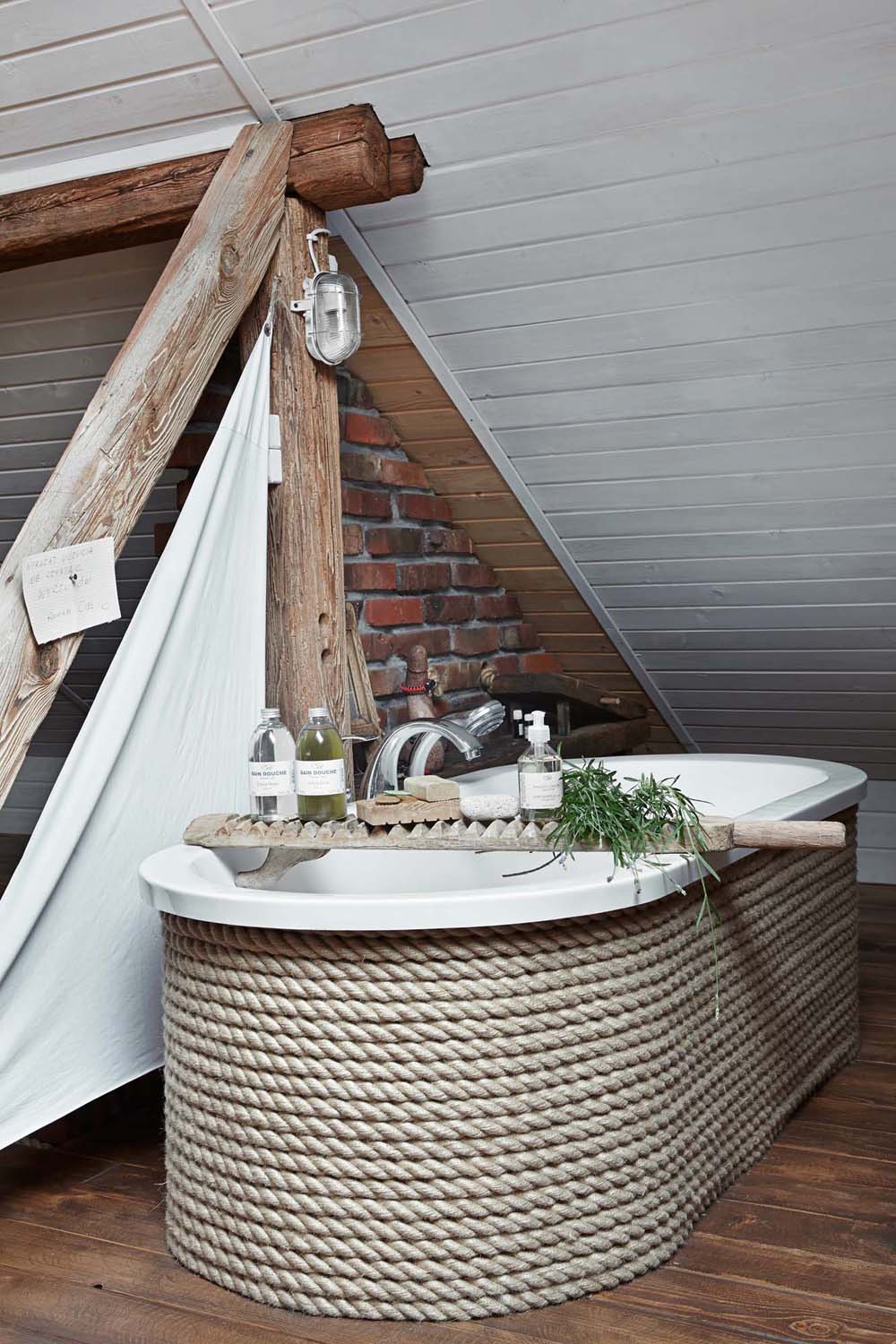 Деревянные поверхности должны выглядеть побывавшими в морской воде и выцветшими после этого на солнце: немного обветшало и ветхо. Используются светлые породы, ясень, бамбук, клен. Экзотические материалы подойдут в комнаты, оформляемые в тропическом стиле.