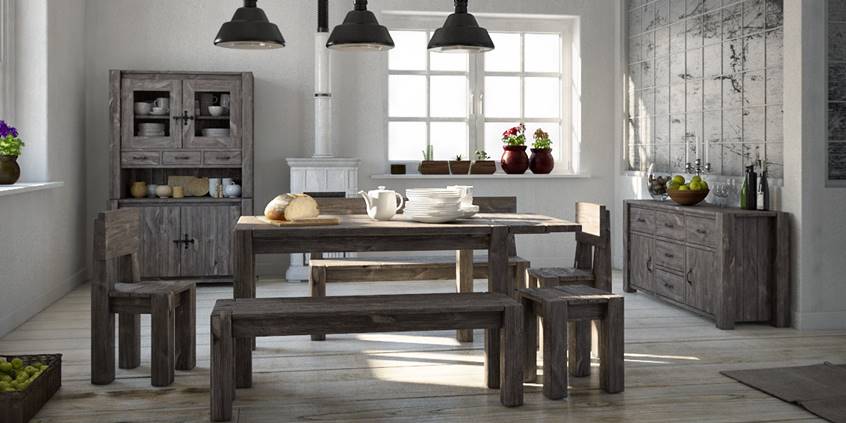 - Деревянная мебель, обработанная так, что кажется выгоревшей на солнце;