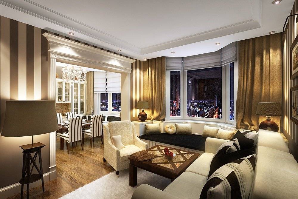 Лучше всего для применения в интерьере подойдет неяркая полоска с сочетанием классического белого или бежевого оттенков.