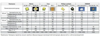 Остальные же характеристики светодиодов, включая и китайскую версию, я свел в табличку: