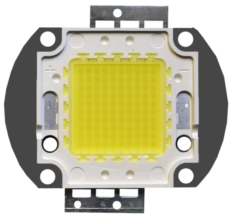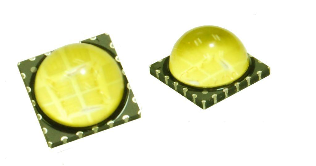 Большое распространение получили светодиоды типа COB (Chip On Board, чип на плате). По сути, это интеграция большого количества (обычно несколько десятков) кристаллов SMD в одном корпусе, которые потом покрываются люминофором.