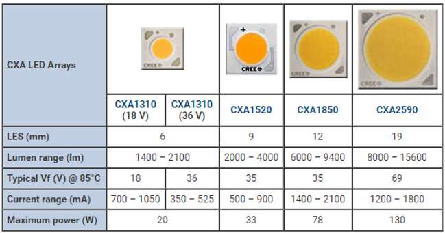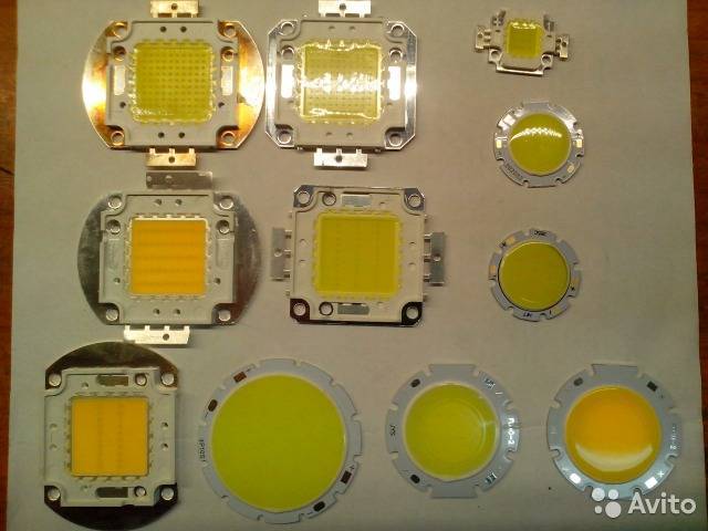 - одиночные светодиоды на одном кристалле большой мощности (COB-матрице);