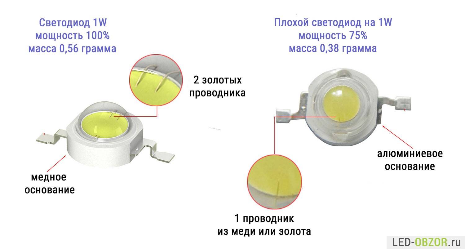 Сейчас, конечно, на рынке электротехники их стало несколько больше. Дело в том, что на глаз при приобретении фальшивку отличить от оригинального светодиода практически невозможно. Среди отличий характеристик подделки выделяются пониженные показатели светоотдачи, более быстрая деградация элемента, т. к. по сути он был просто «разогнан» до параметров Cree-светодиода, а также в 4-5 раз меньший срок службы.