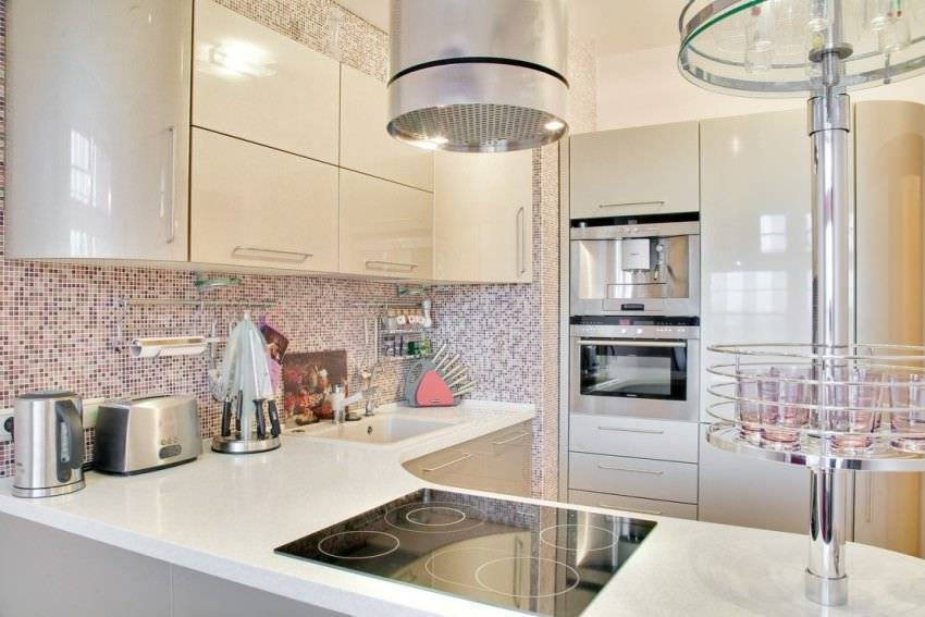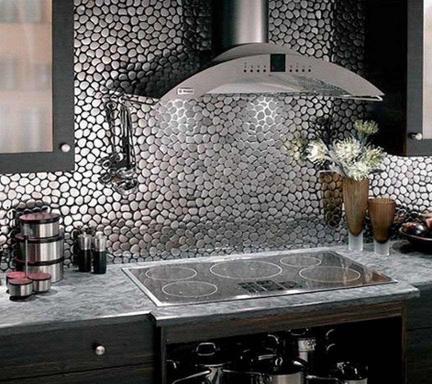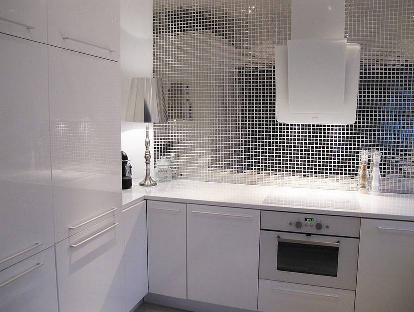 Еще разновидность на основе стекла – зеркальная мозаика. Смотрится эффектно в интерьерах ар-деко, хай-тек. Актуальна для кухонь небольшой площади, т.к. увеличивает помещение в объеме благодаря отражению.
