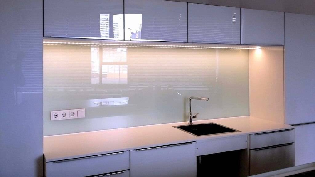 Если выбирать необычный материал для изготовления панелей для кухни, то можно присмотреться к закаленному жаропрочному стеклу. Оно имеет следующие преимущества и недостатки.