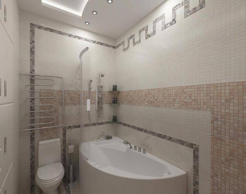 Вариантов отделки ванной может быть много. Выбор цвета и орнамента в первую очередь зависит от формы ванной комнаты, её размера и высоты потолков.