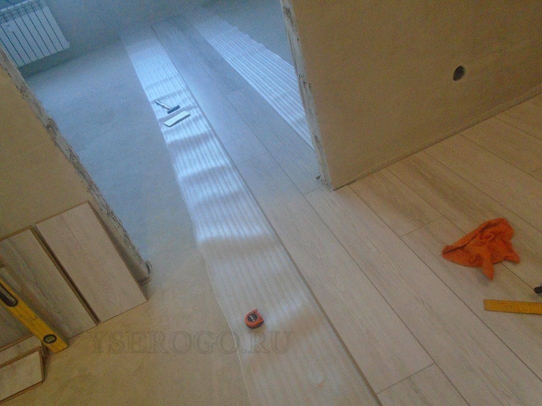 Итак, укладка в первой комнате продолжается до тех пор, пока один из рядов не начнет выходить в дверной проем. В этом случае нужно продолжать