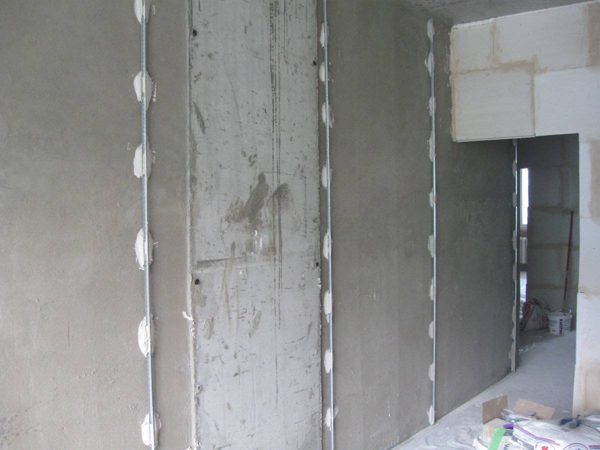 - ·После нанесения по маякам получается самая гладкая поверхность. Дополнительно заглаживать поверхность не придется (особенно, если сразу делать все грамотно и качественно);