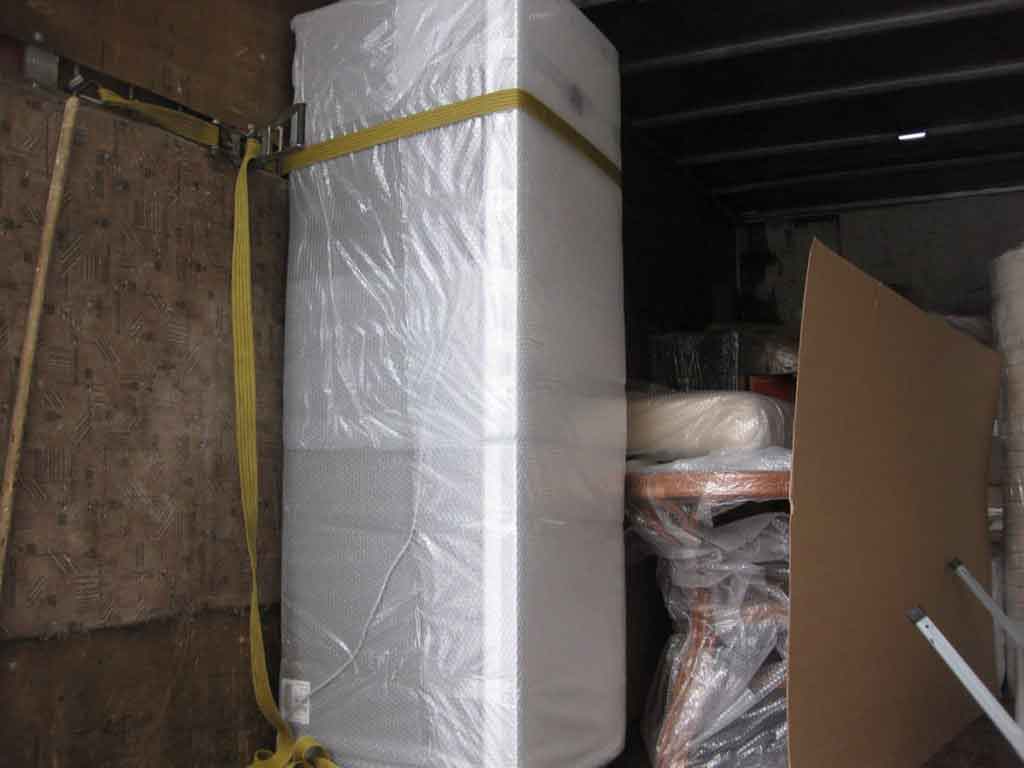 - Чтобы избежать царапин и ударов, поверхность холодильника следует обмотать пузырчатой пленкой, а по краям поставить упоры.