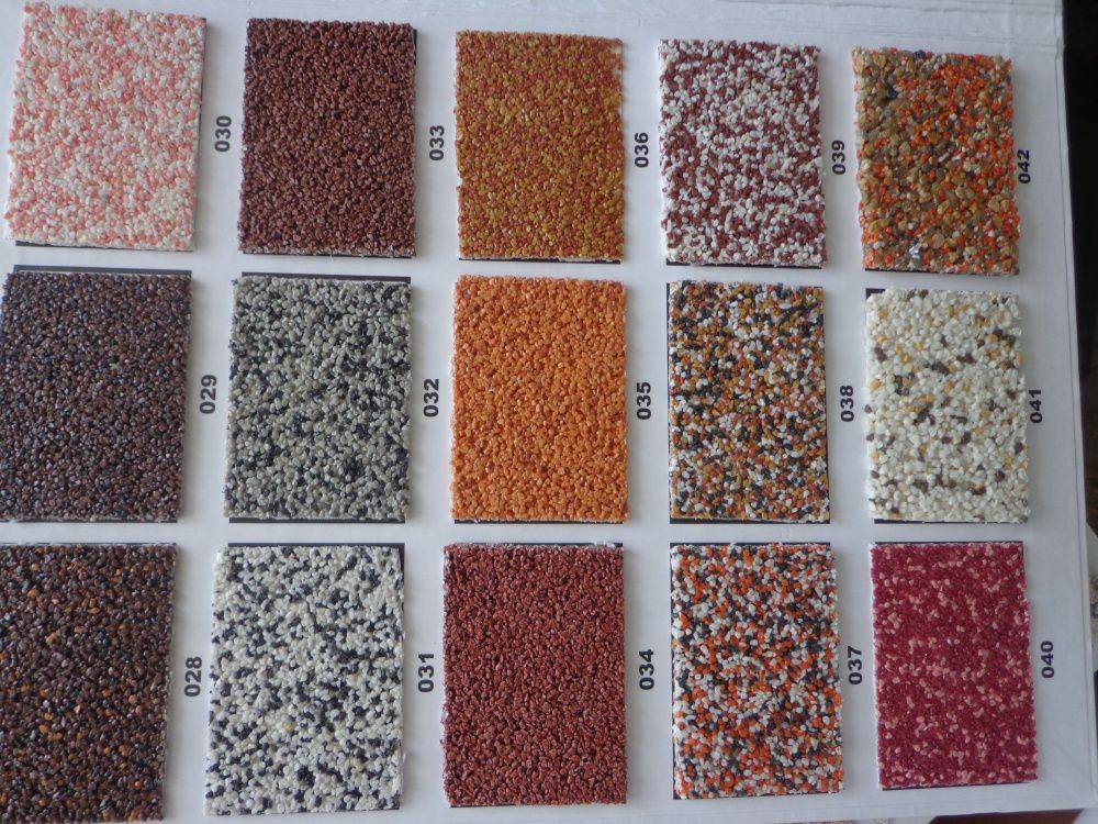 Готовая смесь представляет собой соединения гранитных и мраморных крошек, смешанных специальным клеевым раствором. При высыхании смесь скрывает неровности и шероховатости. Всего компания выпускает около 48 базовых оттенков, но при желании можно получить своеобразную колористическую гамму путем смешения нескольких цветов.